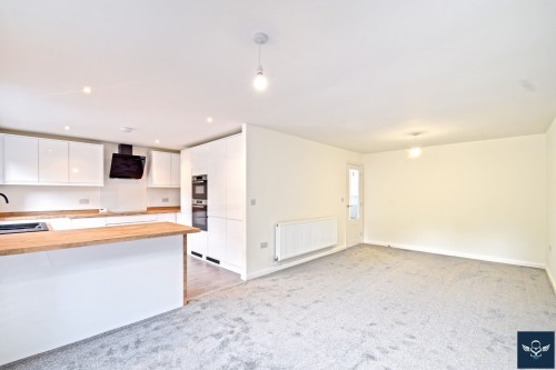 10’11” x 10’01” 1 ½ bowl modern composite sink unit and drainer with cupboards under, matching range of newly installed wall, base and tall units incorporating stainless steel oven / grill, combination microwave oven and four ring ceramic hob with extractor over, co-ordinating worktops and upstands extending to provide breakfast bar, integrated fridge freezer and washing machine, inset spot lighting to ceiling. UPVC framed double glazed window overlooking the rear garden. Opening through into:-