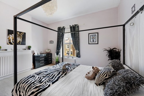 12’02” x 10’0” into chimney breast recess with inbuilt storage cupboards. UPVC framed triple-glazed window to the front elevation, radiator, coved ceiling with centre ceiling rose, understairs storage recess.