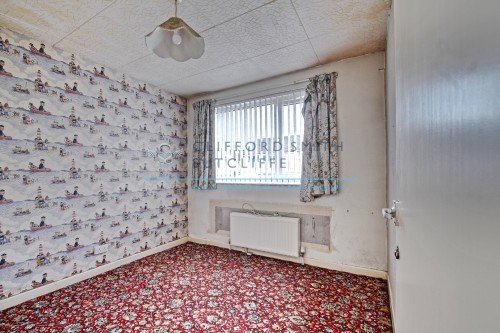 12’0” x 10’05” Comprehensive range of fitted wardrobes and cupboards with matching dressing table unit, radiator. UPVC framed double glazed window to the rear elevation.