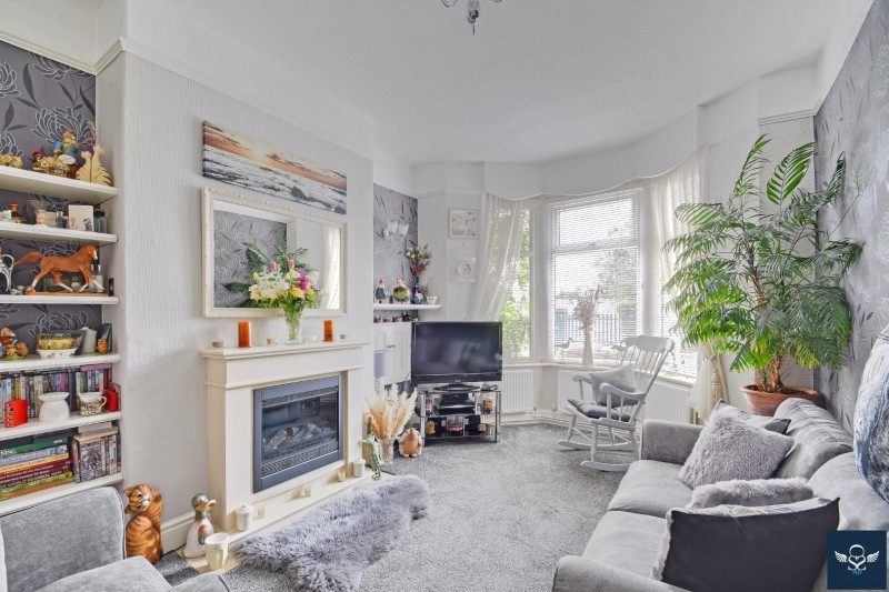 13’0” x 11’09” into chimney breast recess. Feature fireplace with marble inlay / hearth and inset coal-effect living flame gas fire, coved ceiling, radiator. UPVC framed double glazed picture-window to the front elevation. Opening into:-