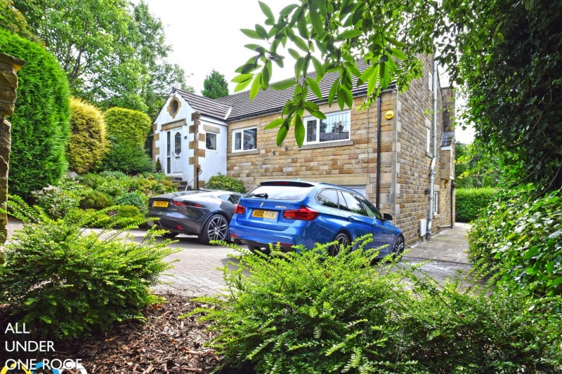 An opportunity to acquire this individual architect-designed residence, constructed circa 1980 and affording deceptive living accommodation over three floors. This versatile, family-sized property provides attractively proportioned reception spaces and up-to six-bedrooms all of which have been immaculately maintained to the credit of the existing vendors. A bright lounge opens with glazed patio-style doors onto a wrought iron railed balcony at the rear, overlooking mature, well-tended gardens which envelop the property and abut open countryside beyond. There is a modern family dining kitchen at lower ground-floor level which opens beneath an open porch and paved patio beyond. A further attic room accessed via wrought iron railed stairs has been utilised as a sixth bedroom with its own two-piece cloakroom. A great deal of effort has gone into the meticulously maintained, landscaped gardens which envelop the property with neat paved patio areas with space for sofa and alfresco dining, lawned gardens, mature flower / shrub borders and driveway providing off-road parking to a generous integral garage with further storage area or space for home gym. An early appointment to view is recommended in order to appreciate the condition and accommodation on offer.