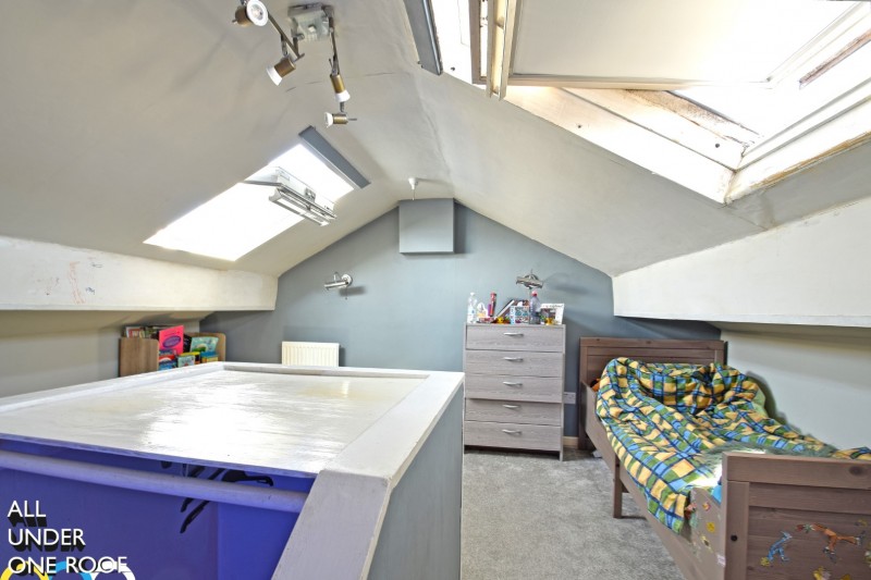 13’08” x 12’10” Return staircase, further eaves recess, radiator. Two sealed unit double glazed Velux-windows to the front and rear elevations.